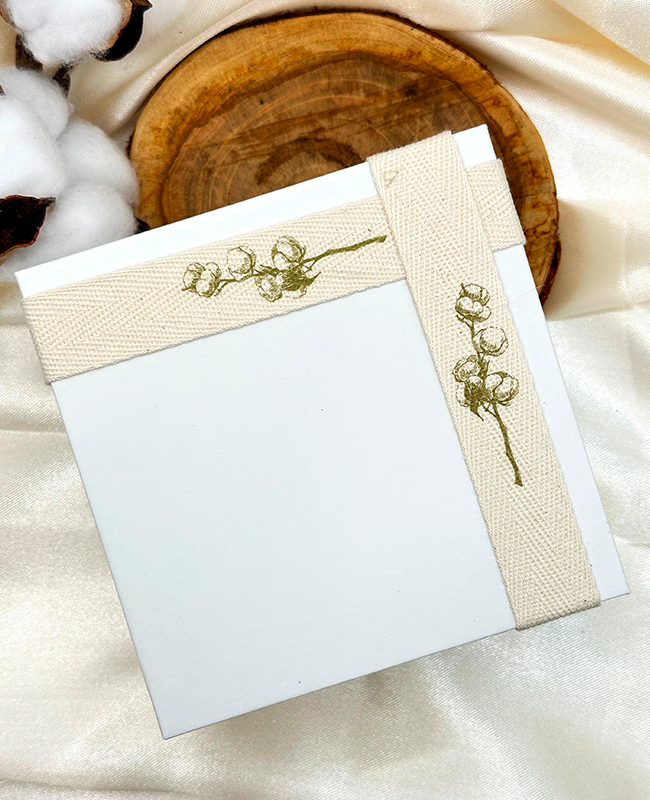Cetim importado de base branca ou preta, reconhecido pela combinação entre brilho sofisticado e toque extremamente suave — atributos que conferem um acabamento nobre e agregam valor à apresentação da marca.